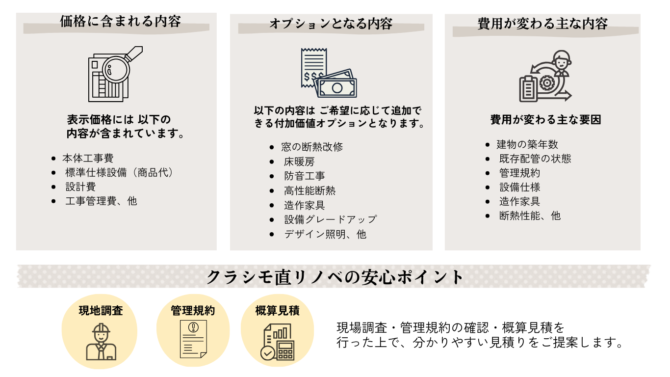 中古マンション購入+リノベーションの進め方やリノベ費用、間取り変更などを専門スタッフが分かりやすくご説明します。